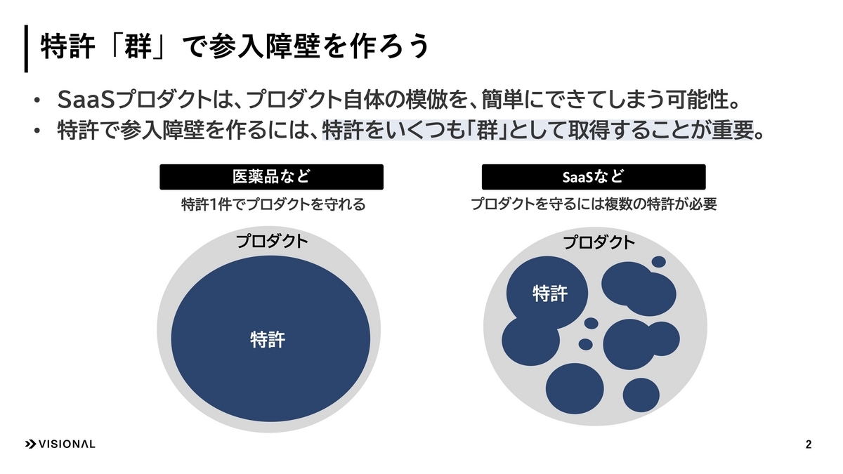 また、我々のようなSaaSプロダクトの特許は、1つの特許だけではプロダクトをカバーできないことが多く、「特許を「群」として取得することが重要」であると再認識しました。